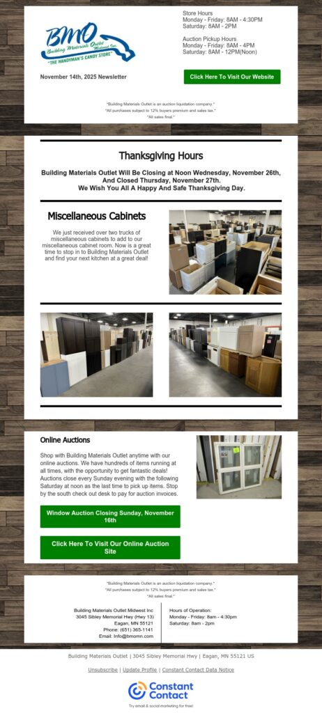 November 14th, 2025 - Thanksgiving Hours & Miscellaneous Cabinets